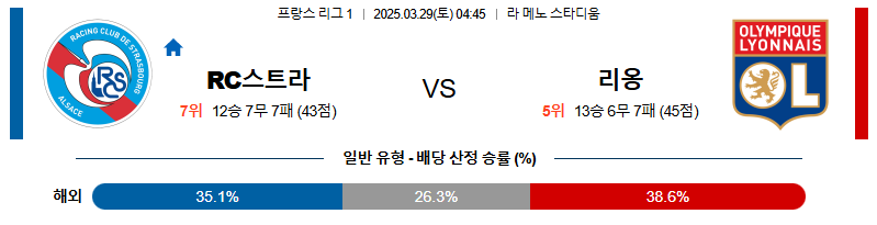 스트라스부르 대 리옹 리그앙 03월29일 맞대결 생중계, 스포츠중계, 스포츠분석
