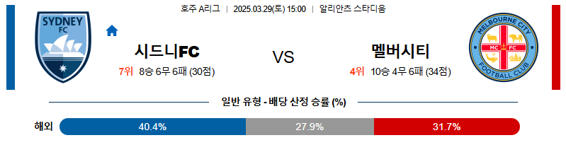 시드니 대 멜버른시티 호주A리그 03월29일 맞대결 생중계, 스포츠중계, 스포츠분석