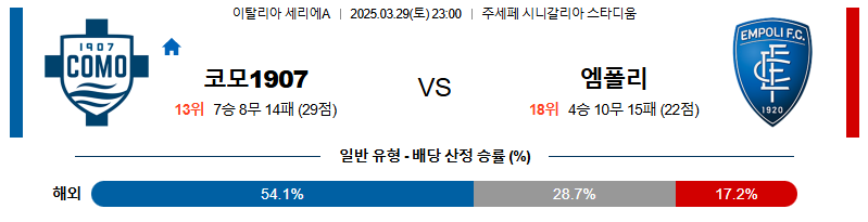 코모 대 엠폴리 세리에A 03월29일 맞대결 생중계, 스포츠중계, 스포츠분석