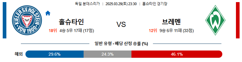 홀슈타인킬 대 베르더브레멘 분데스리가 03월29일 맞대결 생중계, 스포츠중계, 스포츠분석