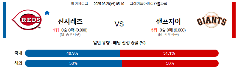 신시내티 대 샌프란시스코 MLB 03월28일 맞대결 생중계, 스포츠중계, 스포츠분석