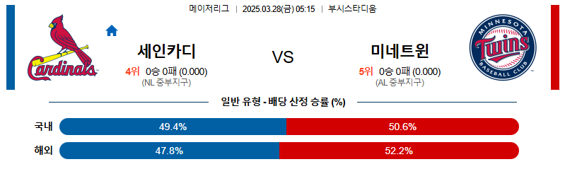 St.루이스 대 미네소타 MLB 03월28일 맞대결 생중계, 스포츠중계, 스포츠분석
