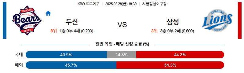 두산 대 삼성 KBO 03월28일 맞대결 생중계, 스포츠중계, 스포츠분석