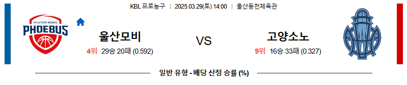 울산현대모비스 대 고양소노 KBL 03월29일 맞대결 생중계, 스포츠중계, 스포츠분석
