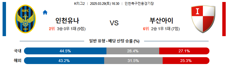 인천 대 부산 K리그2 03월29일 맞대결 생중계, 스포츠중계, 스포츠분석