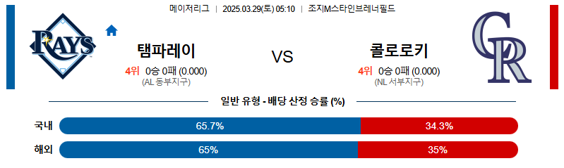 탬파베이 대 콜로라도 MLB 03월29일 맞대결 생중계, 스포츠중계, 스포츠분석