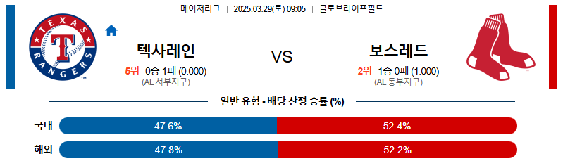 텍사스 대 보스턴 MLB 03월29일 맞대결 생중계, 스포츠중계, 스포츠분석