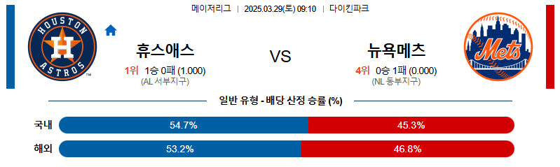 휴스턴 대 뉴욕메츠 MLB 03월29일 맞대결 생중계, 스포츠중계, 스포츠분석