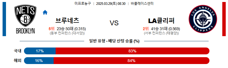 브루클린 대 LA클리퍼스 NBA 03월29일 맞대결 생중계, 스포츠중계, 스포츠분석