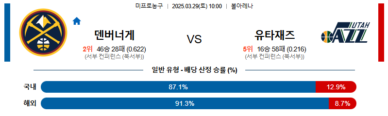 덴버 대 유타 NBA 03월29일 맞대결 생중계, 스포츠중계, 스포츠분석