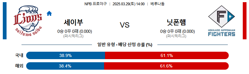 세이부 대 니혼햄 NPB 03월29일 맞대결 생중계, 스포츠중계, 스포츠분석