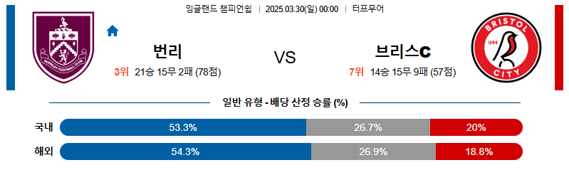 번리 대 브리스톨시티 잉글랜드챔피언쉽 03월30일 맞대결 생중계, 스포츠중계, 스포츠분석