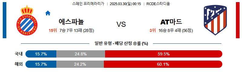 에스파뇰 대 아틀레티코마드리드 라리가 03월30일 맞대결 생중계, 스포츠중계, 스포츠분석