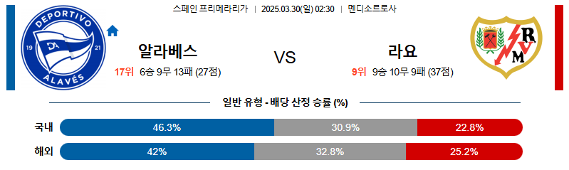 알라베스 대 라요바예카노 라리가 03월30일 맞대결 생중계, 스포츠중계, 스포츠분석