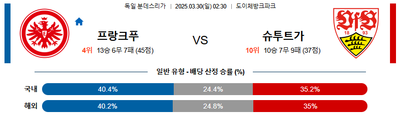 프랑크푸르트 대 슈투트가르트 분데스리가 03월30일 맞대결 생중계, 스포츠중계, 스포츠분석