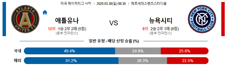 애틀랜타 대 뉴욕시티 메이저리그사커 03월30일 맞대결 생중계, 스포츠중계, 스포츠분석