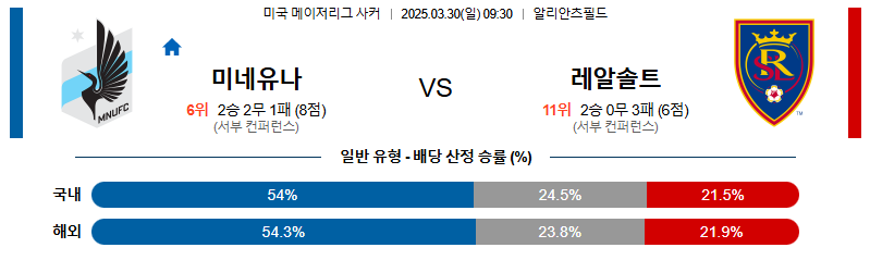 미네소타 대 레알솔트레이크 메이저리그사커 03월30일 맞대결 생중계, 스포츠중계, 스포츠분석