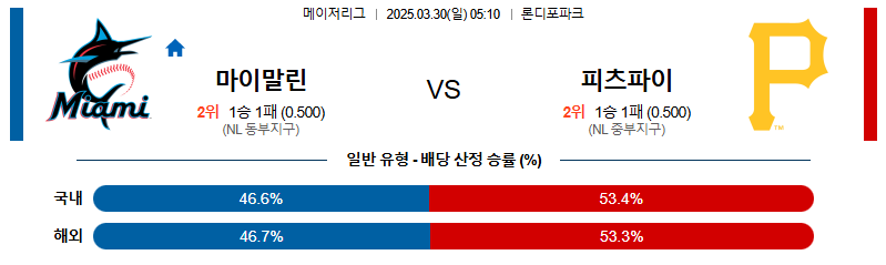 마이애미 대 피츠버그 MLB 03월30일 맞대결 생중계, 스포츠중계, 스포츠분석