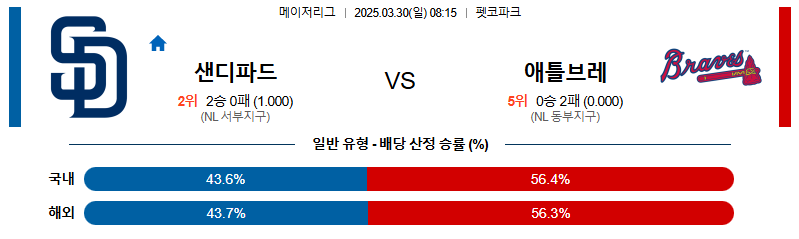 샌디에이고 대 애틀랜타 MLB 03월30일 맞대결 생중계, 스포츠중계, 스포츠분석