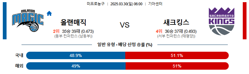올랜도 대 새크라멘토 NBA 03월30일 맞대결 생중계, 스포츠중계, 스포츠분석