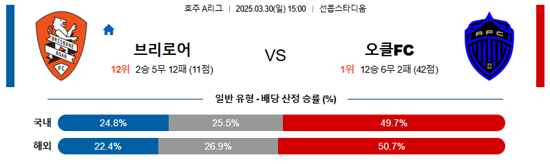 브리즈번 대 오클랜드 호주A리그 03월30일 맞대결 생중계, 스포츠중계, 스포츠분석