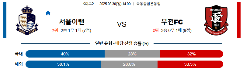 서울이랜드 대 부천 K리그2 03월30일 맞대결 생중계, 스포츠중계, 스포츠분석