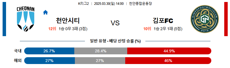 천안 대 김포 K리그2 03월30일 맞대결 생중계, 스포츠중계, 스포츠분석