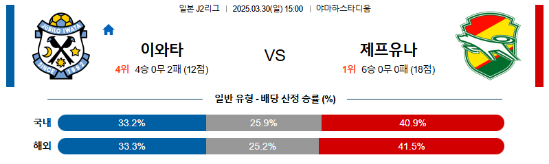 주빌로이와타 대 제프유나이티드 J리그2 03월30일 맞대결 생중계, 스포츠중계, 스포츠분석