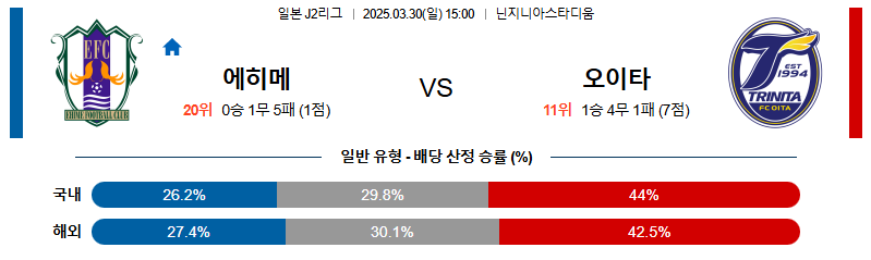 에히메 대 오이타 J리그2 03월30일 맞대결 생중계, 스포츠중계, 스포츠분석