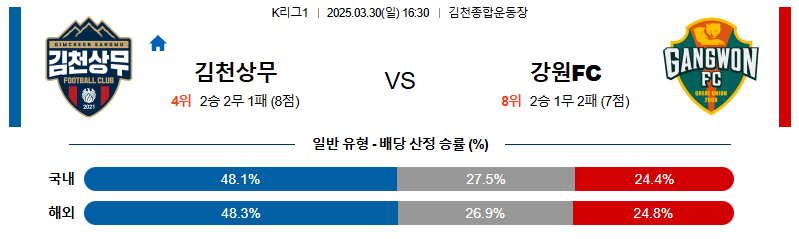김천 대 강원 K리그1 03월30일 맞대결 생중계, 스포츠중계, 스포츠분석