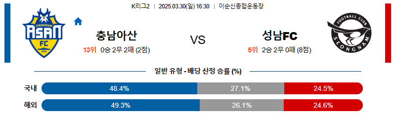 아산 대 성남 K리그2 03월30일 맞대결 생중계, 스포츠중계, 스포츠분석