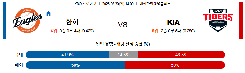 한화 대 KIA KBO 03월30일 맞대결 생중계, 스포츠중계, 스포츠분석