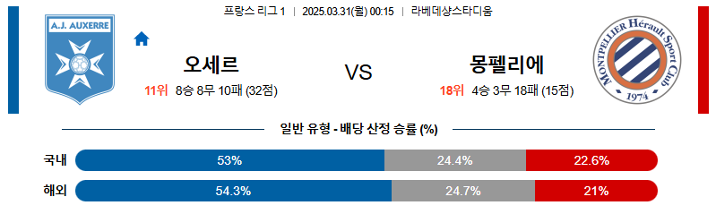 옥세르 대 몽펠리에 리그앙 03월31일 맞대결 생중계, 스포츠중계, 스포츠분석