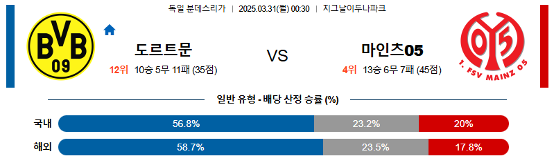 도르트문트 대 마인츠 분데스리가 03월31일 맞대결 생중계, 스포츠중계, 스포츠분석