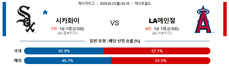 시카고W 대 LA에인절스 MLB 03월31일 맞대결 생중계, 스포츠중계, 스포츠분석