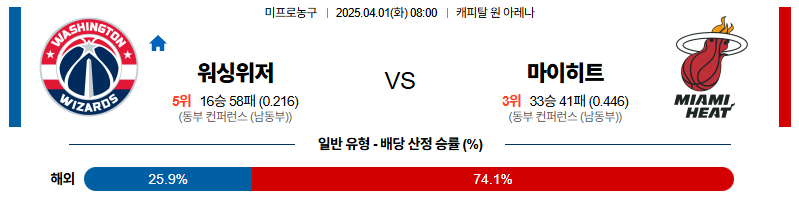 워싱턴 대 마이애미 NBA 04월01일 맞대결 생중계, 스포츠중계, 스포츠분석