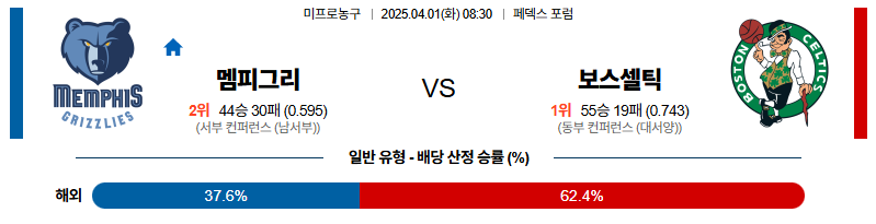 멤피스 대 보스턴 NBA 04월01일 맞대결 생중계, 스포츠중계, 스포츠분석