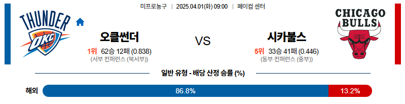 오클라호마 대 시카고 NBA 04월01일 맞대결 생중계, 스포츠중계, 스포츠분석