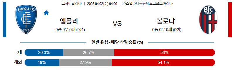 엠폴리 대 볼로냐 코파이탈리아 04월02일 맞대결 생중계, 스포츠중계, 스포츠분석