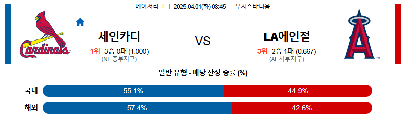 세인트루이스 대 LA에인절스 MLB 04월01일 맞대결 생중계, 스포츠중계, 스포츠분석