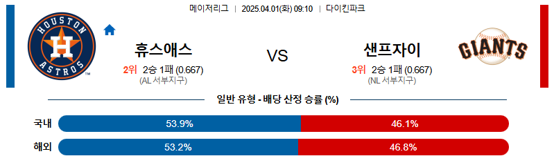 휴스턴 대 샌프란시스코 MLB 04월01일 맞대결 생중계, 스포츠중계, 스포츠분석