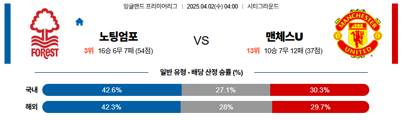 노팅엄 대 맨유 프리미어리그 04월02일 맞대결 생중계, 스포츠중계, 스포츠분석
