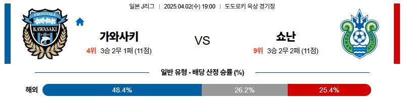 가와사키 대 쇼난 J리그1 04월02일 맞대결 생중계, 스포츠중계, 스포츠분석