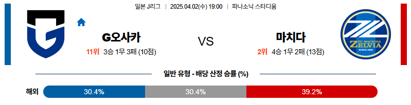 감바오사카 대 마치다 J리그1 04월02일 맞대결 생중계, 스포츠중계, 스포츠분석