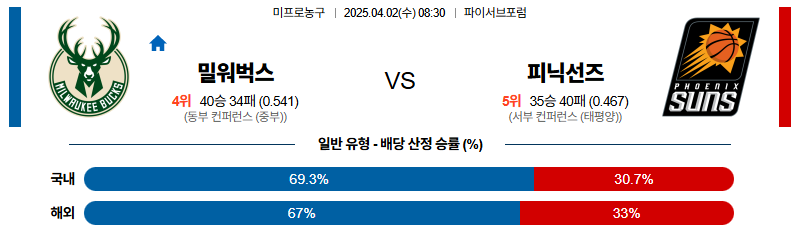 밀워키 대 피닉스 NBA 04월02일 맞대결 생중계, 스포츠중계, 스포츠분석
