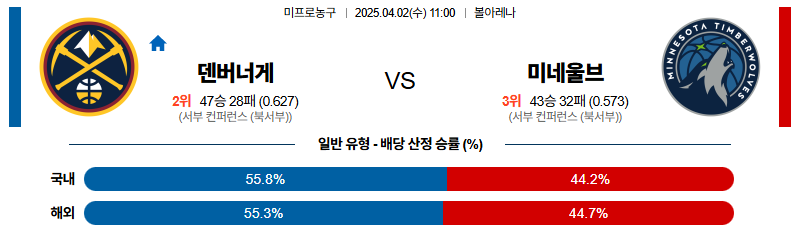 덴버 대 미네소타 NBA 04월02일 맞대결 생중계, 스포츠중계, 스포츠분석