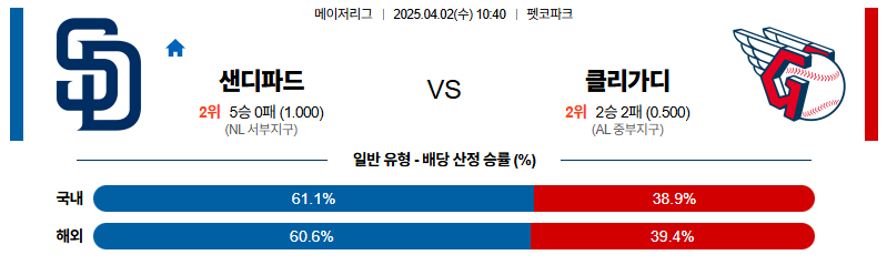 샌디에이고 대 클리블랜드 MLB 04월02일 맞대결 생중계, 스포츠중계, 스포츠분석