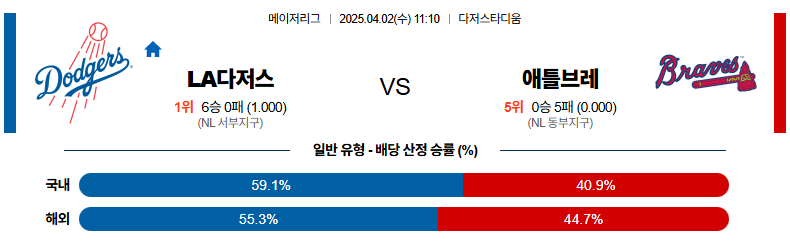 LA다저스 대 애틀랜타 MLB 04월02일 맞대결 생중계, 스포츠중계, 스포츠분석