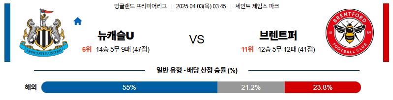 뉴캐슬 대 브렌트퍼드 프리미어리그 04월03일 맞대결 생중계, 스포츠중계, 스포츠분석
