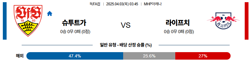 슈투트가르트 대 라이프치히 독일FA컵 04월03일 맞대결 생중계, 스포츠중계, 스포츠분석